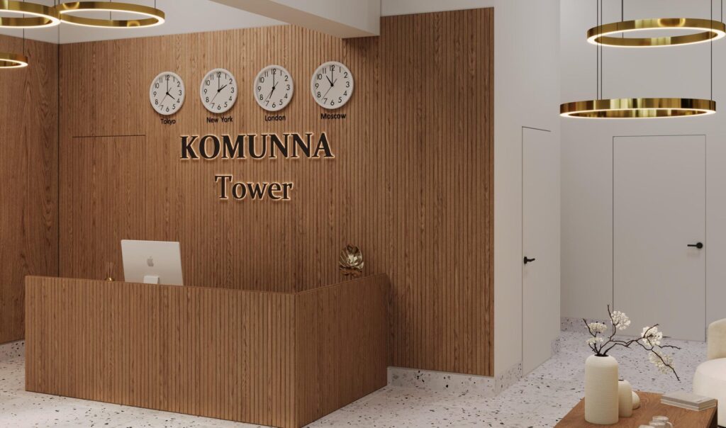 В строительной компании 𝐊𝐨𝐦𝐮𝐧𝐧𝐚 𝐓𝐨𝐰𝐞𝐫 вас ждёт изысканная и современная ресепшн-зона с элегантными элементами, которая выделяется не только своим внешним видом, но и функциональностью.