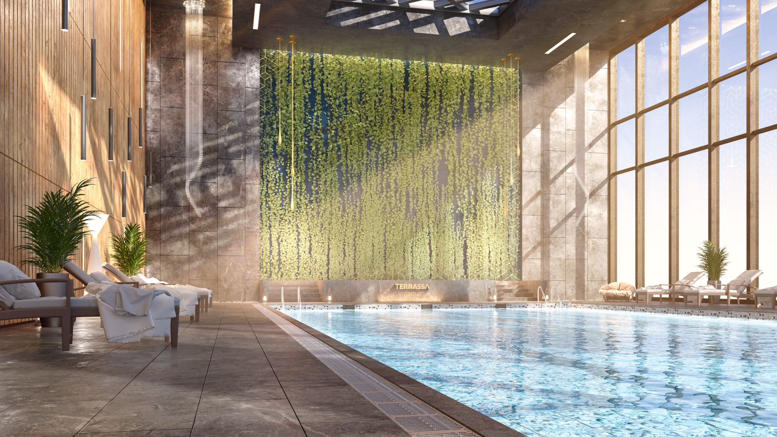 კომპლექსში თქვენ დაგხვდებათ: საცურაო აუზი , სპორტულ–გამაჯანსაღებელისივრცე , კაფე–რესტორანი ,რეცეფცია, კონსიერჟი.